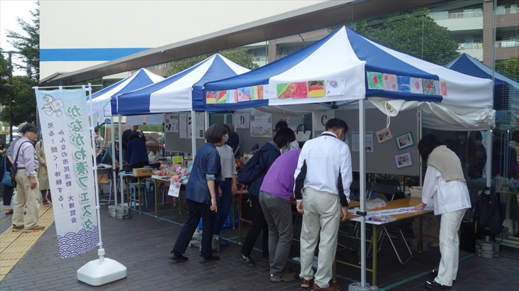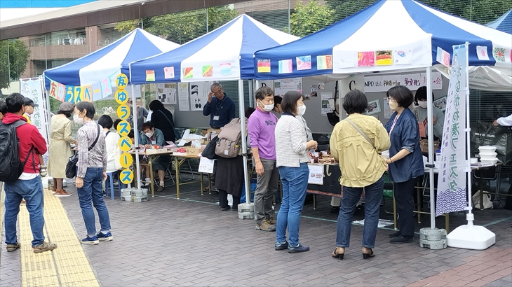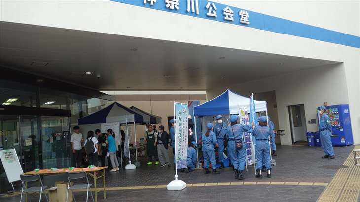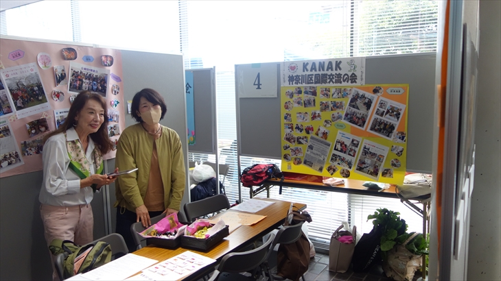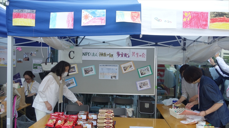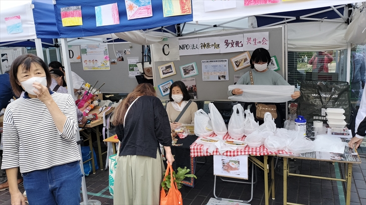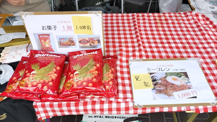 At 9 a.m., we went to the Indonesian restaurant “Dapor Konen” to pick up some sweets and begin preparations for setting up. The outside booth was organized by the Kanagawa Ward Multicultural Coexistence Association, Tanpopo Rokkakubashi, Tomoyu Space, and international relations teams.