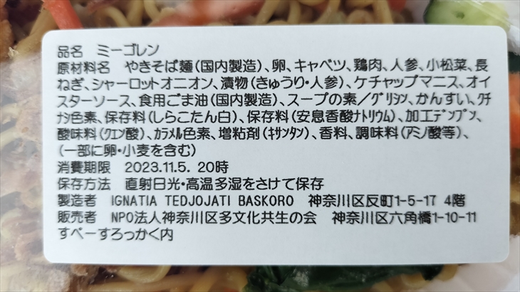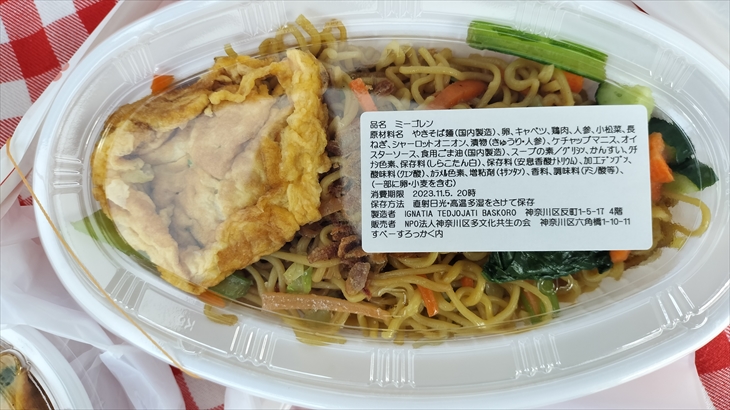 Food labeling required for food sales. We successfully cleared this requirement and the sale of “Mie Goreng”, which was made possible with the cooperation of the Indonesian restaurant “Dapor Konen”, was a wonderful experience.
