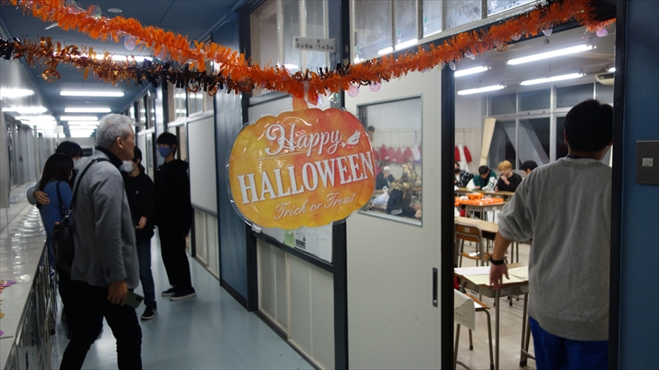 I was invited to a Halloween party held by the Suiran High School night club’s multicultural coexistence club. At 9pm, we were met by the teacher in charge and walked through the maze-like hallways until we arrived at the classroom where Halloween decorations were being made.