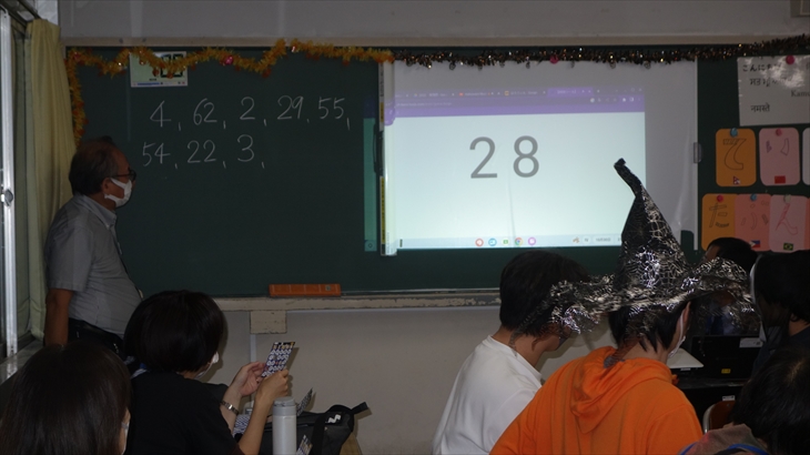 学生们已经到了,我们进去的时候万圣节派对就开始了。首先,每个人都进行了简短的自我介绍,然后进行了宾果游戏,并以糖果作为奖品,最后以合影留念结束・・・・